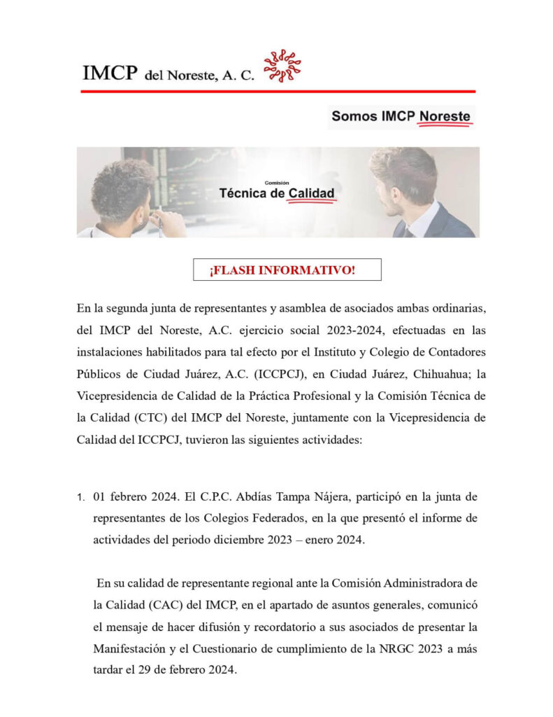 1° boletín informativo de la Comisión Técnica de Calidad de la Región Noreste