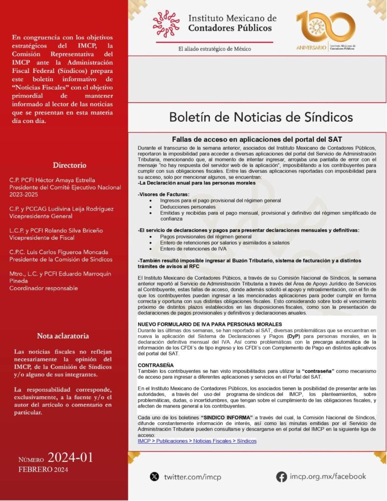 - Boletines de Síndicos que se publican en el sitio oficial del IMCP.