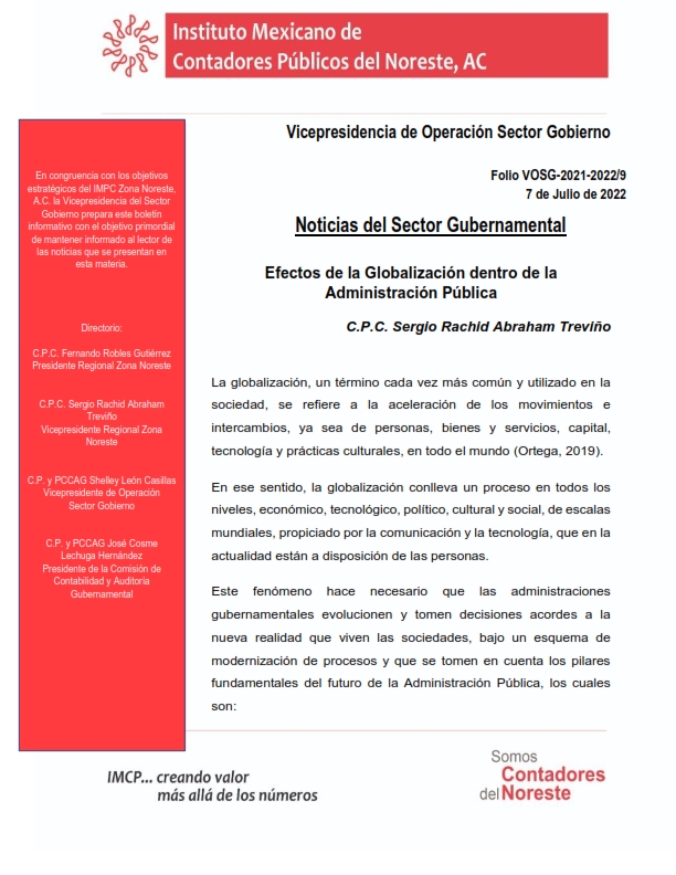 6° boletín de noticias edición julio 2022: Efectos de la globalización dentro de la administración pública