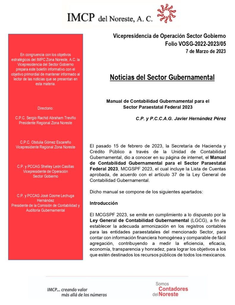 5° boletín de noticias edición marzo 2023: Manual de Contabilidad Gubernamental para el sector paraestatal federal 2023